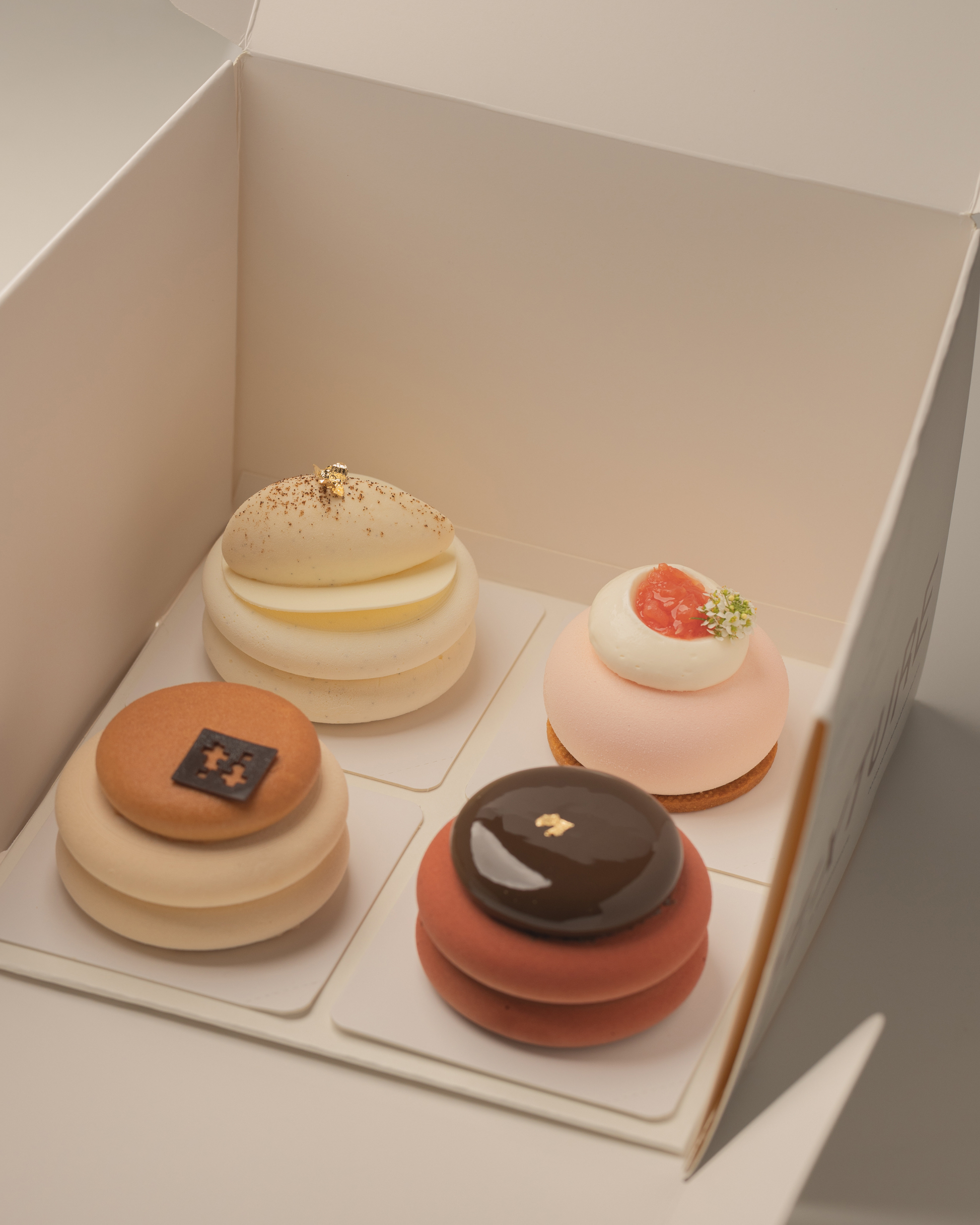 A curated set of four handcrafted mini cakes. Perfect for tea time, gifting, celebrations, or as an everyday luxury. Each petit gâteau is a miniature version of our whole cakes, offering a taste of our signature flavours. A way to experience the best of TEXTURE in one box.